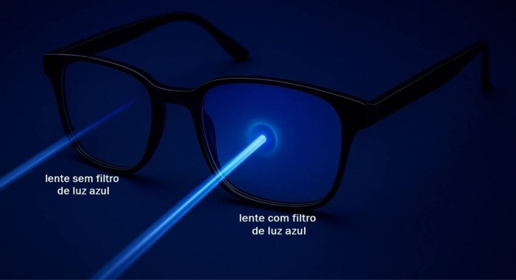 Diferença entre lentes comuns e lentes blue light (filtro de luz azul).